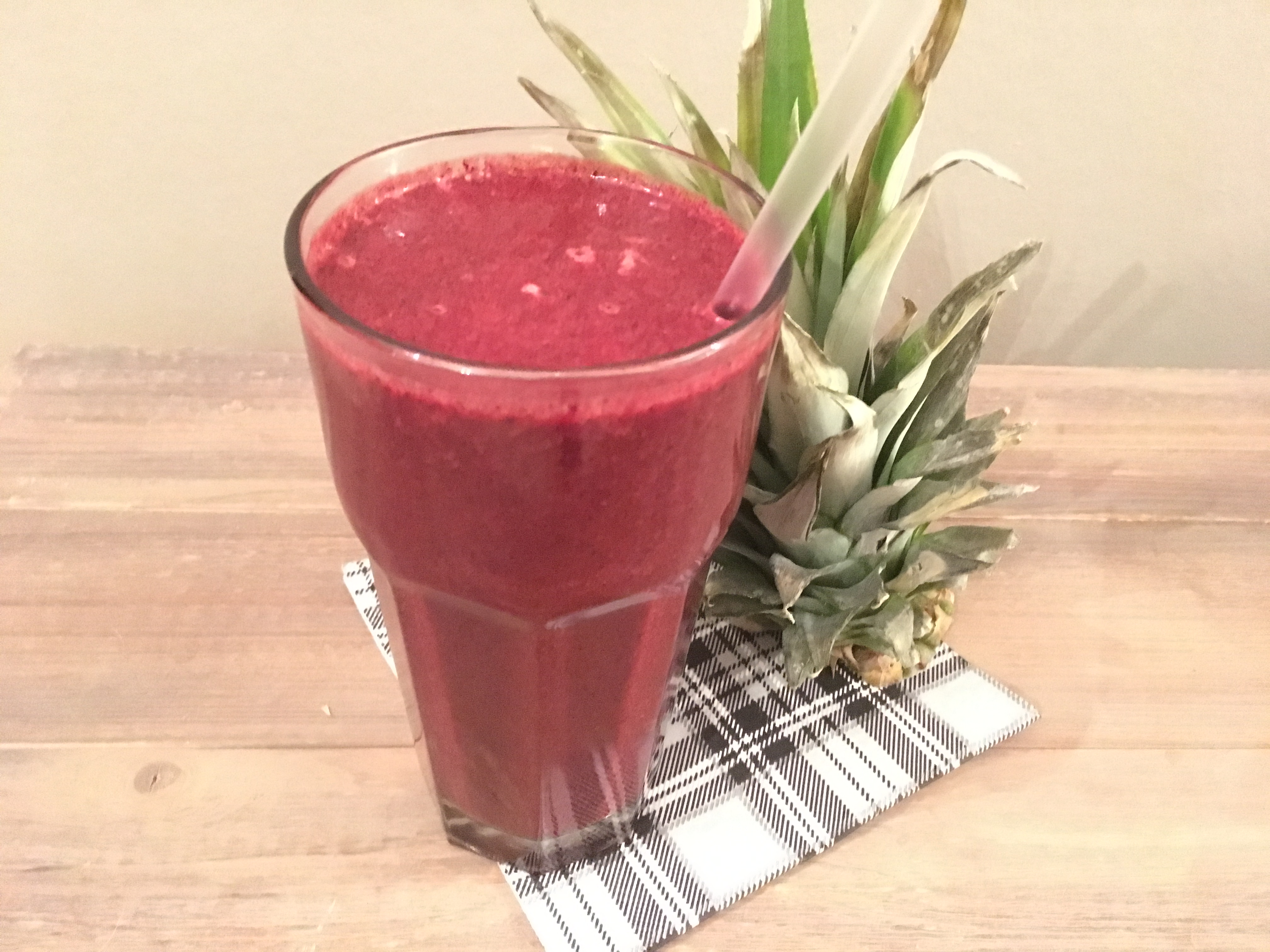 Die Ananas schälen und komplett (mit dem mittleren, etwas härteren Teil) in den Smoothie-Mixer geben. Die Heidelbeeren waschen, bzw. TK Heidelbeeren auftauen lassen. Heidelbeeren zusammen mit den restlichen Zutaten zur Ananas in den Mixer geben und alles auf höchster Stufe 1 – 2 Minuten mixen. Je nach gewünschter Konsistenz kann es sein, dass du noch etwas mehr Wasser zugießen musst. Dann den fertigen Smoothie in Gläser füllen und genießen!