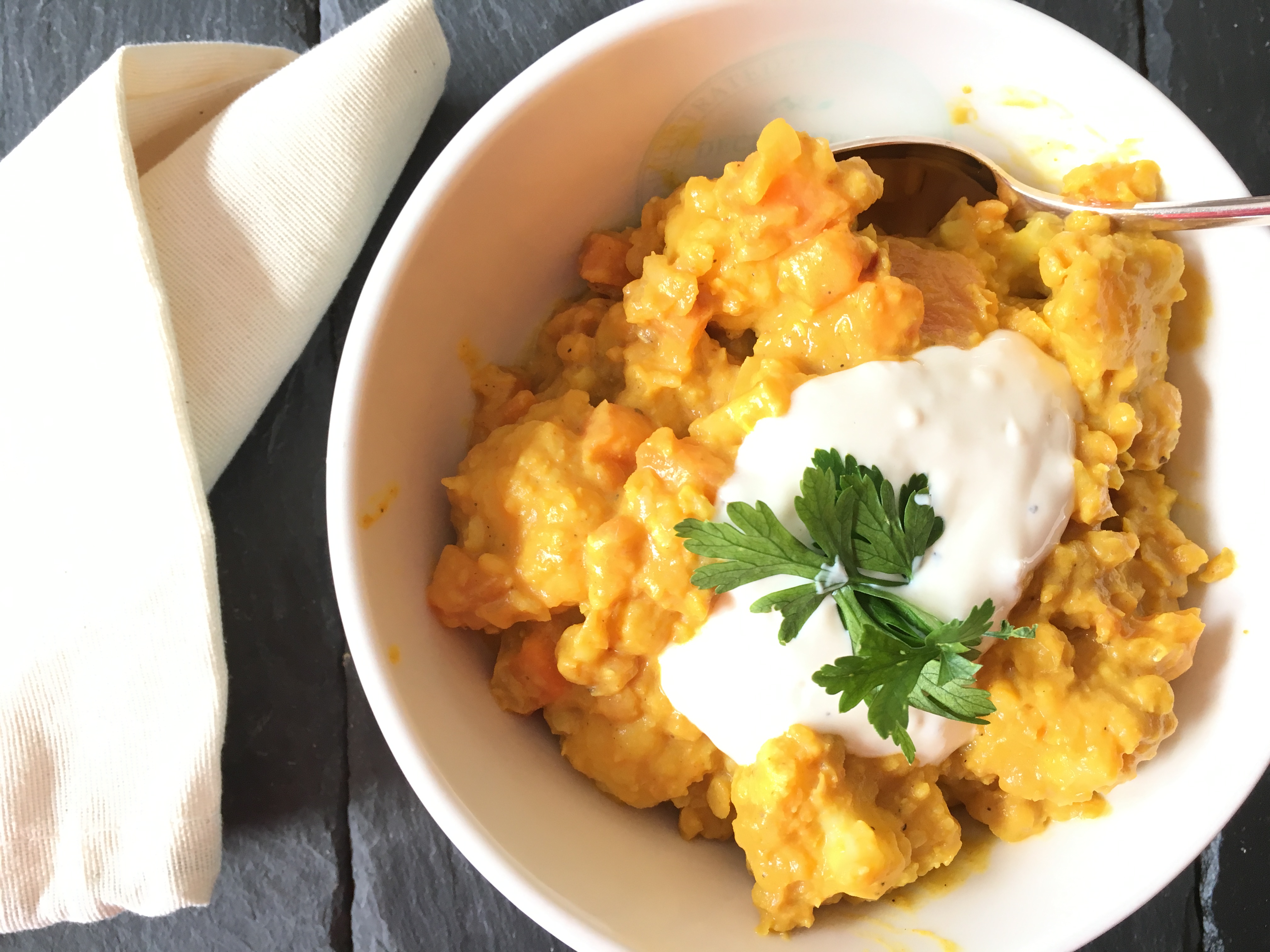 Das Dal ist schnell zubereitet und es eignet sich hervorragend zum Aufwärmen, wenn du es zum Beispiel mit zur Arbeit nehmen möchtest.
