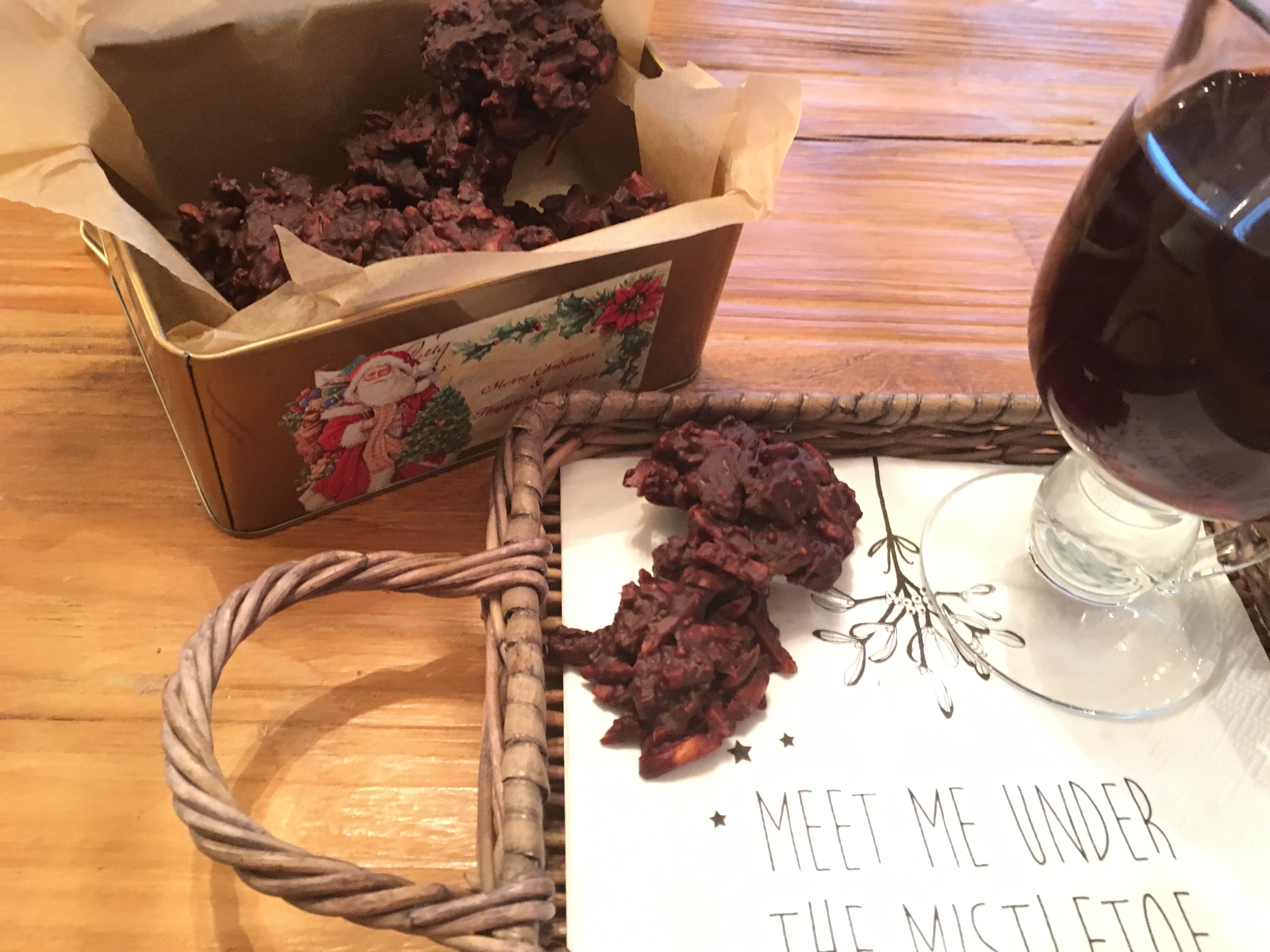 Diese Weihnachts-Leckerei besteht aus gesunden Mandeln, Feigen und einer dunklen Schokolade, die nur mit Kokosblütenzucker gesüßt ist.